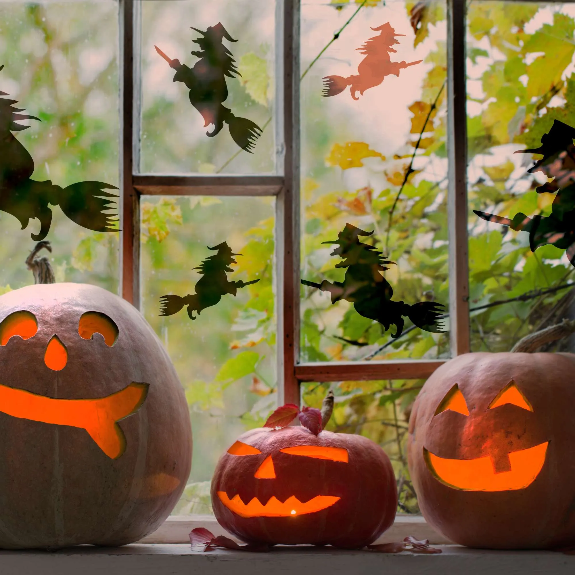 HALLOWEEN šablóny - sada 5 kusov ČARODEJNICA NA METLE